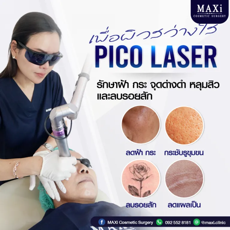 Pico Laser คือเทคโนโลยีเลเซอร์รุ่นใหม่ที่ใช้พลังงานในระดับ พิโควินาที (Picosecond = 1 ต่อหนึ่งล้านล้านวินาที) เพื่อส่งพลังงานเข้าสู่ชั้นผิวได้อย่างแม่นยำ ช่วยสลายเม็ดสีเมลานินที่ผิดปกติอย่างรวดเร็ว โดยไม่ทำลายผิวรอบข้าง เหมาะสำหรับการรักษาปัญหาฝ้า กระ จุดด่างดำ รอยสิว รวมถึงการลบรอยสัก